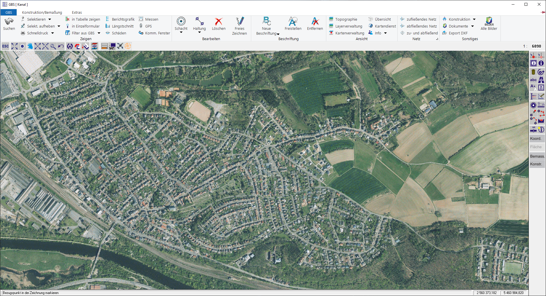 Das Grafisches Bearbeitersystem (GBS) ist die zentrale Arbeitsumgebung von TIFFANY und bildet die Basis aller Anwendungen. Hier werden Netzelemente wie Schächte, Haltungen, Stränge oder Knoten objektorientiert verwaltet und grafisch dargestellt.