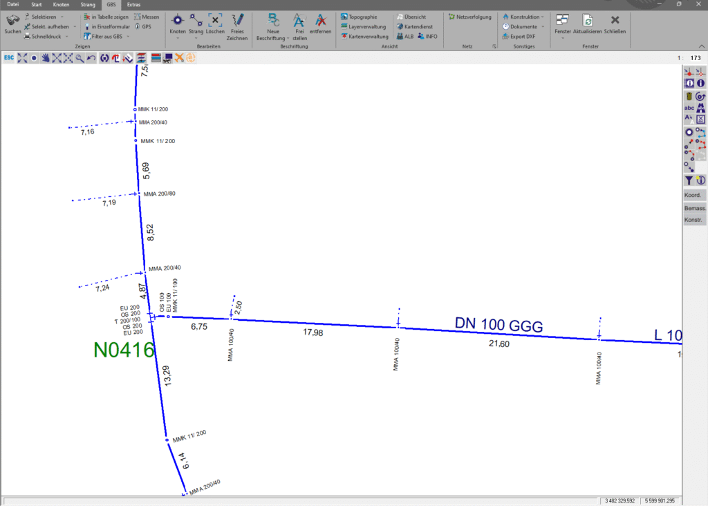 Das Wasserleitungsinformationssystem WALIS ist speziell für die Verwaltung von Trink- und Brauchwassernetzen entwickelt. Es ermöglicht die strukturierte Erfassung aller Netzelemente, einschließlich Knoten, Stränge, Armaturen und Hydranten. Alle Informationen sind objektorientiert in der Datenbank hinterlegt und können jederzeit grafisch visualisiert oder ausgewertet werden.